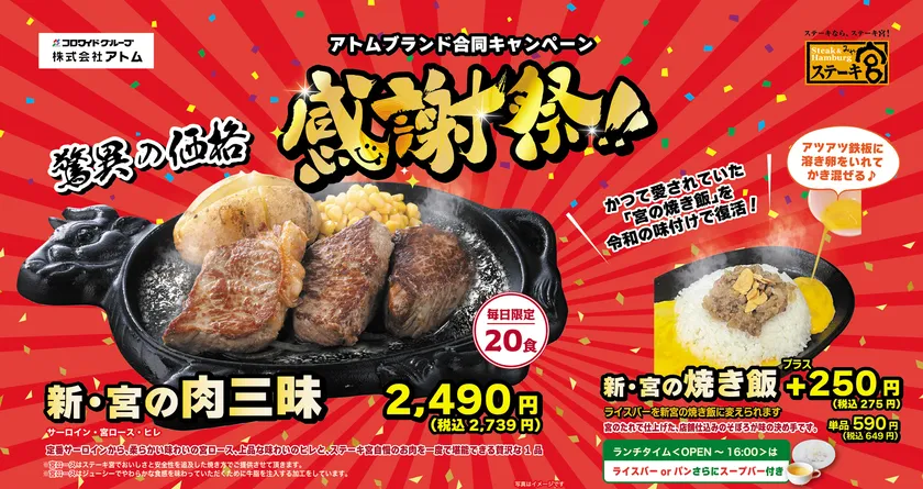 ステーキ宮など、アトム10ブランドによる合同キャンペーン! アトムブランド合同キャンペーン 感謝祭 11月1日より開催!