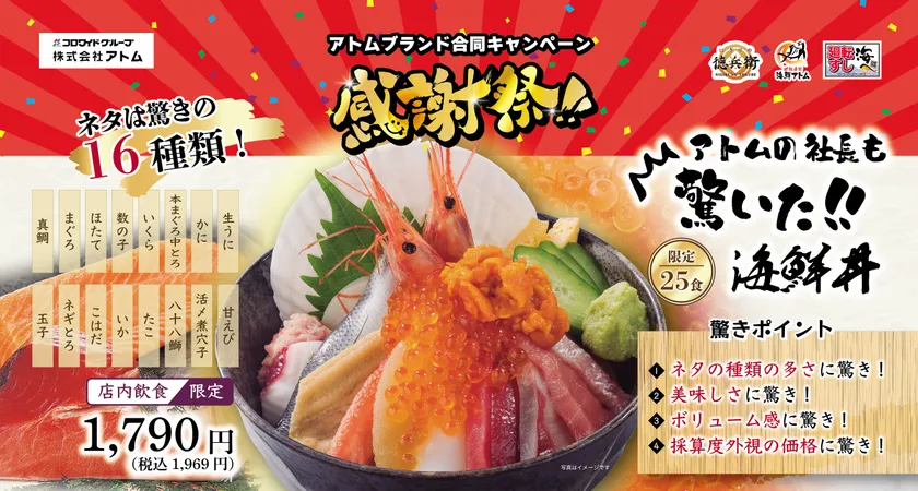 にぎりの徳兵衛、海鮮アトム、海へ 感謝祭特別メニュー