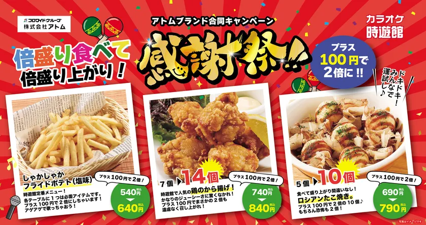 カラオケ時遊館創設35周年の感謝を記念して、人気のメニューを2倍量食べながらカラオケを2倍楽しんでいただける企画で感謝をお伝えします!