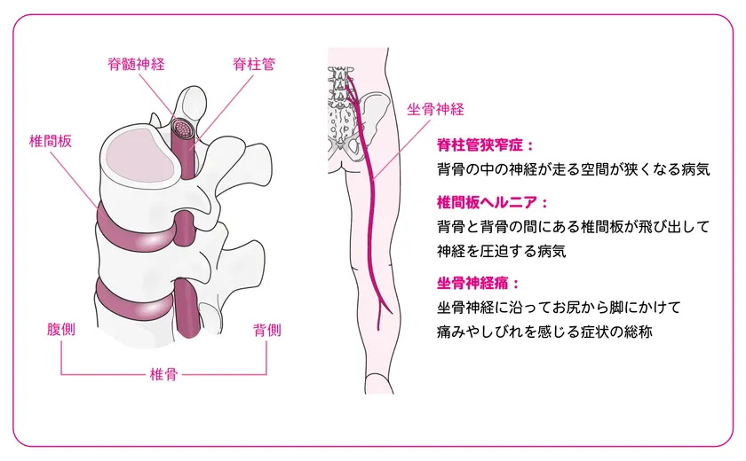 本書では『椎間板ヘルニア』と『坐骨神経痛』についても、診断名と本当の原因の不一致の可能性ついて分かりやすく解説しています。