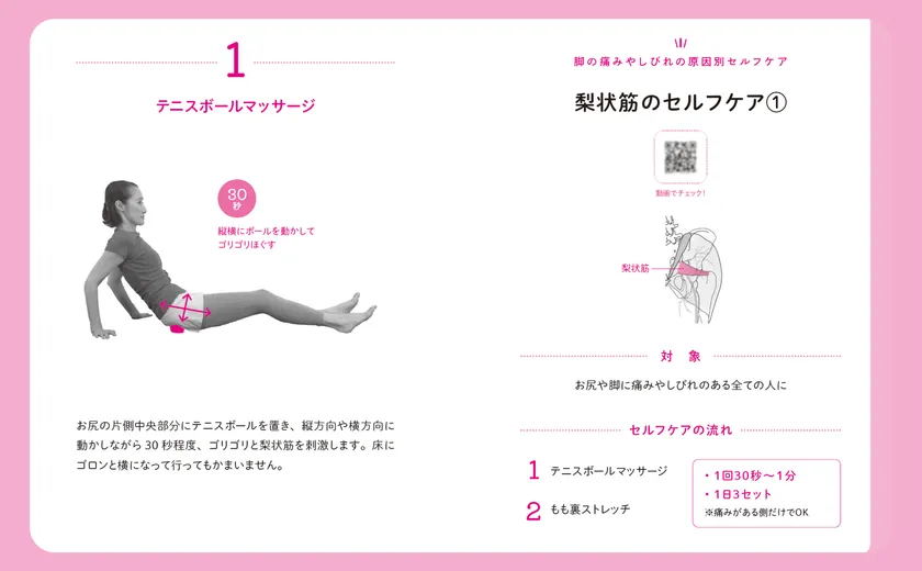 本書はYouTubeでも好評だった『脚のしびれと痛みに対するケア』というテーマを、だれでも簡単にできるようにアレンジした内容を紹介しています。