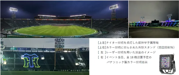 前回開催でも実施した、シーズン中のナイター照明の明滅が連動する演出の再現やカラー照明を用いた外野スタンドを照らす演出のほか、レーザー照明を使用して阪神タイガースのロゴなどを浮かび上がらせる演出なども予定しています。
