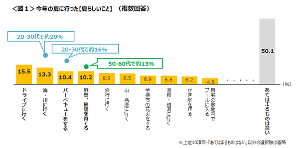 今年の夏の思い出、上位は「ドライブ」「海・川」「バーベキュー」 新型コロナ禍、“密”を避けて楽しむ夏