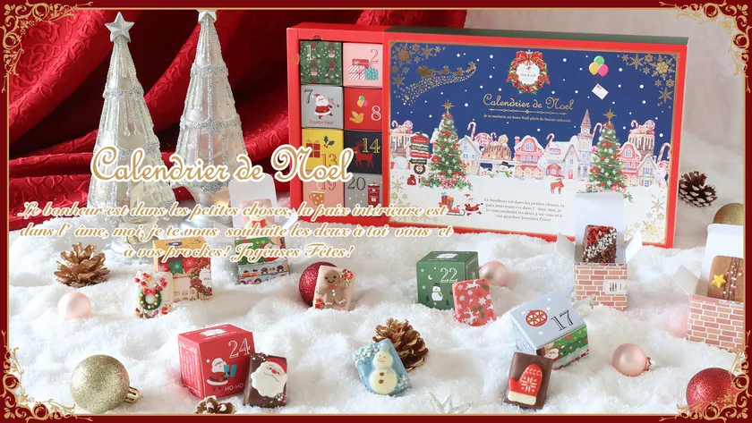 12月1日からクリスマスまでのカウントダウン。「今日はどんなお菓子だろう」と、わくわくする24日間をお楽しみください!