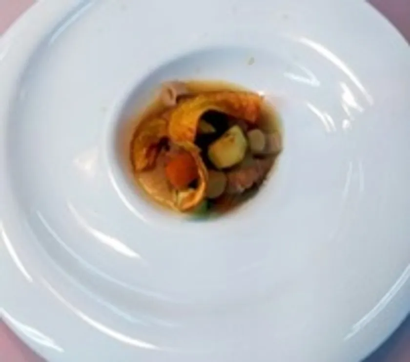 「あわじ鶏のグリルと秋野菜 さつまいものスープ仕立て」