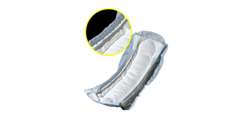 (1) 「横モレ」や「ドッとモレ」を防ぐ『せきとめ立体ギャザー』