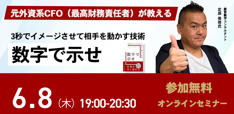 元外資系CFO(最高財務責任者)が教える『3秒でイメージさせて相手を動かす技術「数字で示せ」』発売記念【無料】オンラインイベント!