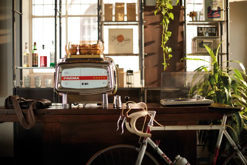 店舗の特徴であるエスプレッソマシンは名機FAEMA E61 JUBILEで抽出されます。