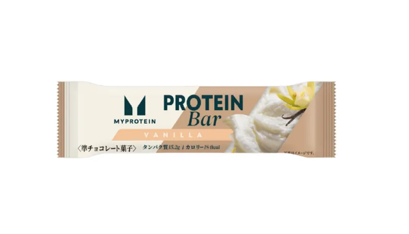 今回発売される「マイプロテインバー バニラ風味」は優しい甘さと爽やかさのバランスがとれたバニラ風味が特徴で、現在全国のファミリーマートで好評発売中の「マイプロテインバー チョコレート味」に続く待望の新フレーバーです。