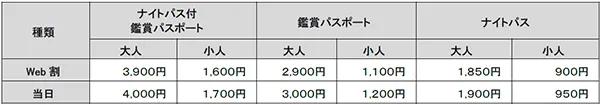 【料金】上記、ナイトパスまたはナイトパス付鑑賞パスポートのとおり