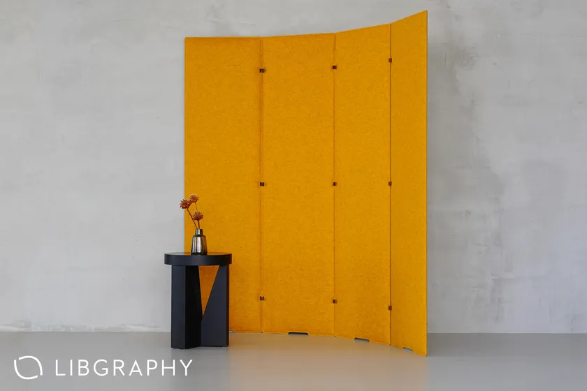 視線だけではなく周囲の音も和らげることができるパーテーションです。工業用レベルの高性能な吸音材を材料としており、高密度なポリエステル繊維とフェルト表皮が音を吸収しザワツキや反響を抑えます。組立式なので、使わない時は分解して収納も簡単。オフィスやお部屋との調和はもちろん、インテリアのアクセントとしてもお使いいただけます。また2021年にはGOOD DESIGN賞を受賞しています。