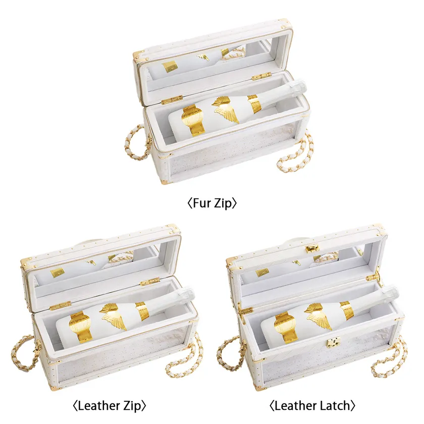 ホワイトカラーのボトルに艶やかなゴールドのラベルを纏い、ラグジュアリー感のあるボトル。バニティタイプのBOX付きで、ファージップタイプ、レザーラッチタイプ、レザージップタイプの3種類で展開。BOXの中には鏡とアクセサリー等が収納できるプレートが付いており、高級感と機能性を併せ持つデザインが特徴です。
