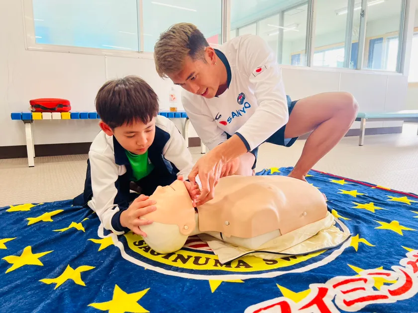 イベントでは、繁田選手が競技者として大切にしている「諦めない気持ち」や「夢の先にある目的の重要性」について語りました。さらに救急法の体験会を実施。子どもたちは事前に学んだ知識をロールプレイで実践し、命を救う行動の重要性を実感。勇気をもって行動することが、自身の夢の実現にも繋がることを学びました。