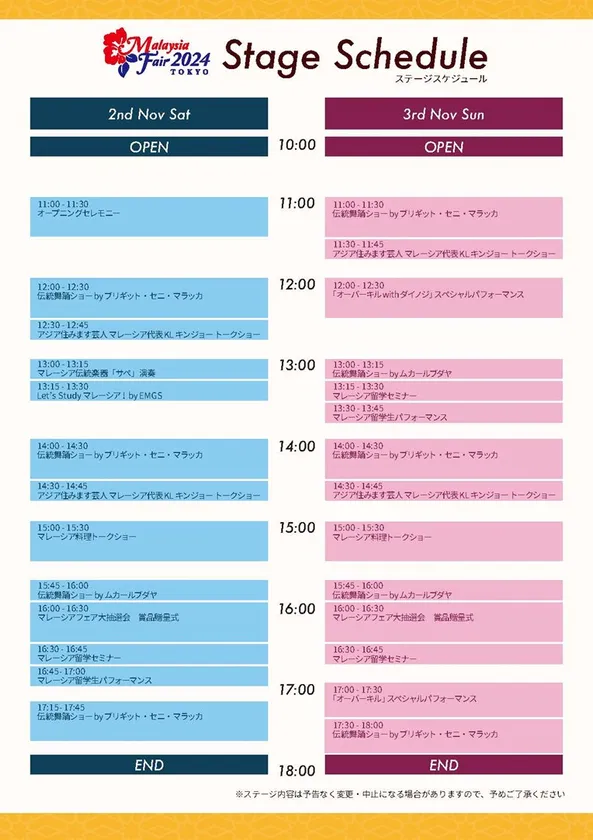 ステージスケジュール