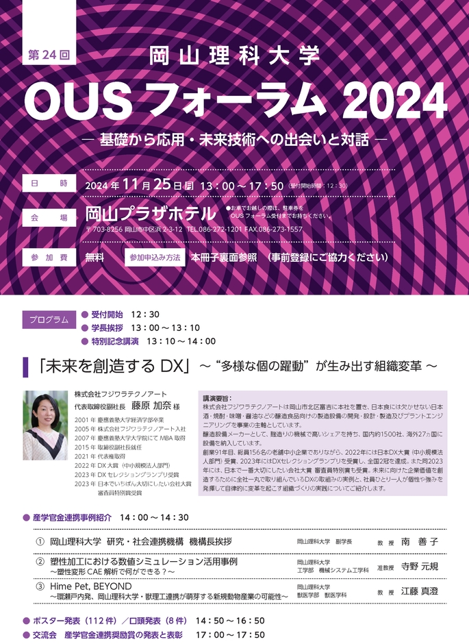 【OUSフォーラム2024】ー 基礎から応用・未来技術への出会いと対話 ー【岡山理科大学】