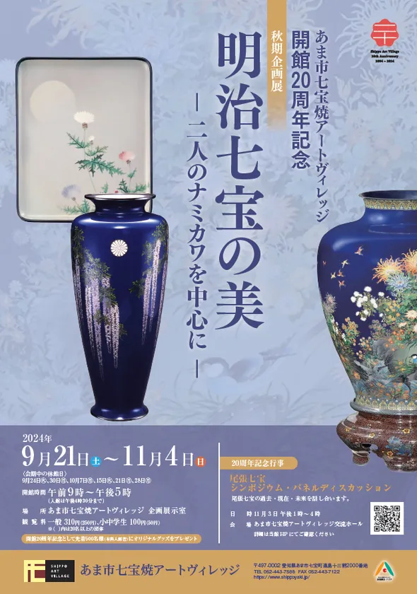 あま市七宝焼アートヴィレッジ(所在:愛知県あま市、館長:内山 智美)は、2024年11月3日(日・祝)に開館20周年を記念するシンポジウム「近代工芸を彩った尾張七宝」&パネルディスカッション「尾張から開く七宝の未来」を開催します。