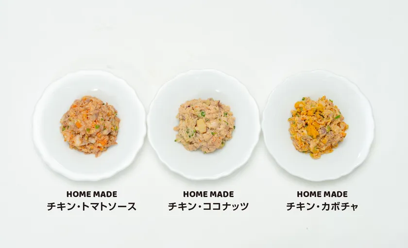 種類 : チキン・トマトソース、 チキン・カボチャ、 チキン・ココナッツ
