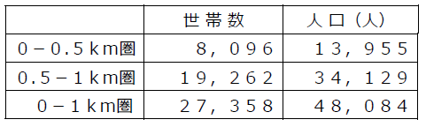 ・店舗から1km圏内は単身世帯比率が60.6%、2人世帯比率は18.9%と全体の約8割が少人数世帯です。