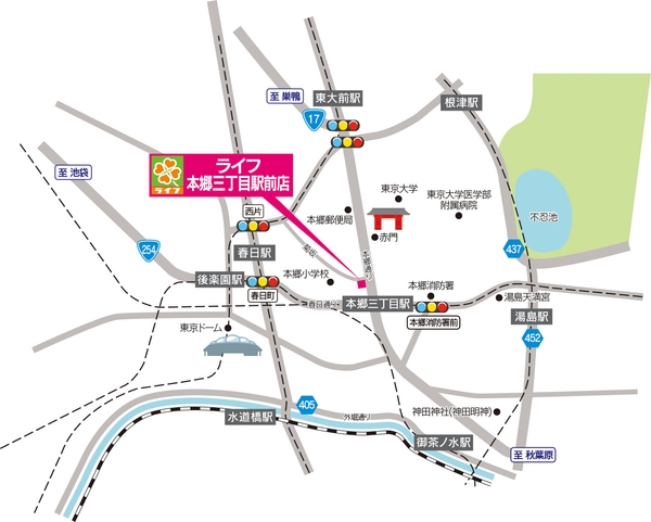 <店 名> 「ライフ本郷三丁目駅前店(ほんごうさんちょうめえきまえ)店」