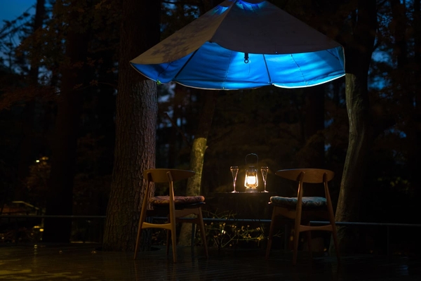 21:00 雨音の中、クラウドテラスで「森の演奏会」を楽しむ