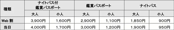 【料金】上記ナイトパスまたはナイトパス付鑑賞パスポートのとおり