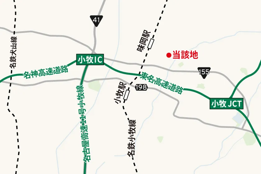 交通 :東名/名神高速道路「小牧IC」約4km、名鉄小牧線「味岡駅」約1.3km