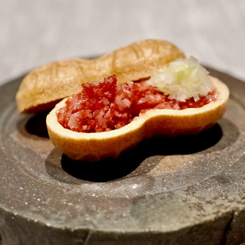 またオープン記念として、通常500円で提供させていただいているお通しの「最中ユッケ」を11月30日まで無料で提供するキャンペーンを開催します。