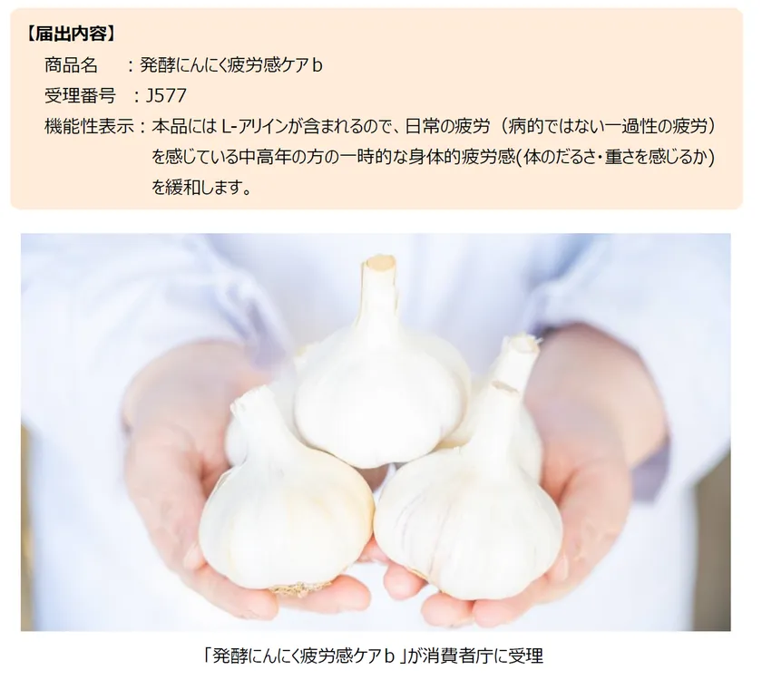 富士産業株式会社(本社:香川県丸亀市、代表取締役:岡田 篤典、以下「当社」)より消費者庁に届出をしておりました機能性表示食品「発酵にんにく疲労感ケアb」が、受理されました。