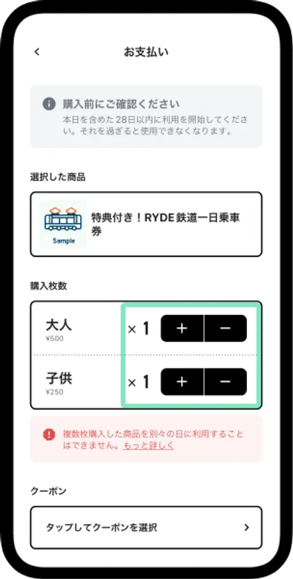 ・購入後の人数変更はできません。