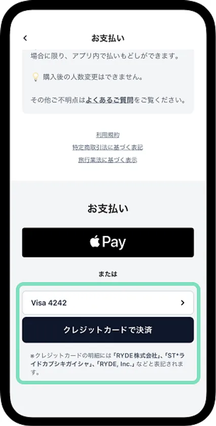 ・払い戻しについてはRYDE社の規約によるお取り扱いとなります。