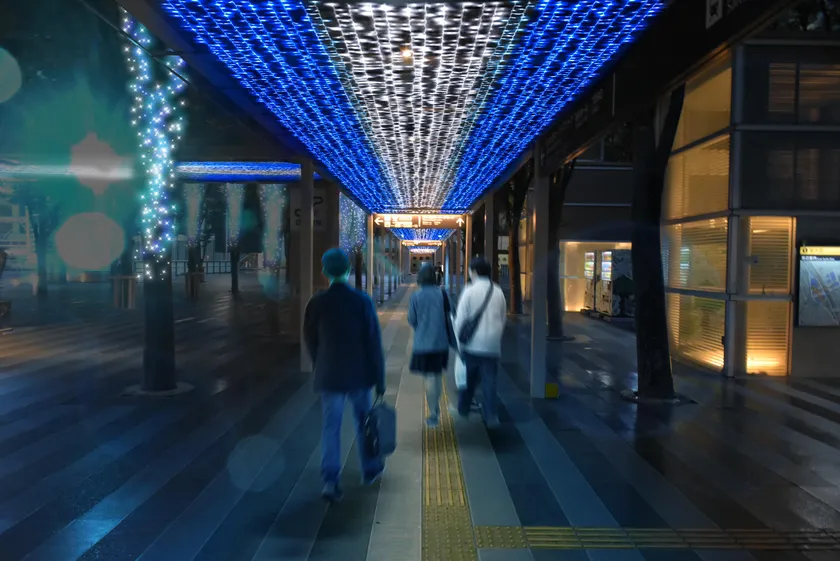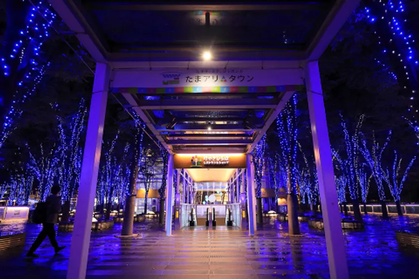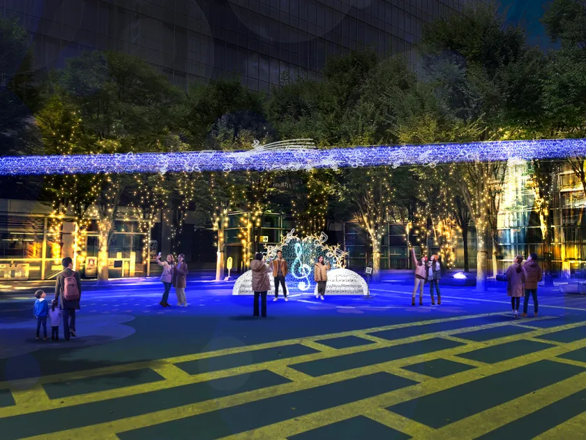 さいたまスーパーアリーナとけやきひろばレストラン&ショップに向かう通路頭上にはカーテンライトがちりばめられ、行き交う皆様を照らしてくれます。そして、芝生広場に向かう並木道では、「祝福の音と光のシンフォニー」(※)が皆様の心を楽しませます。