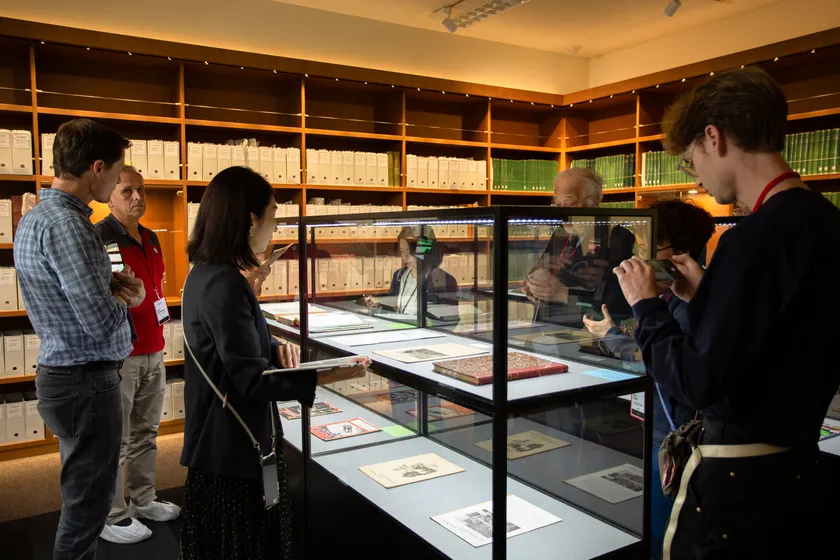 また、会議と並行して、屋外では国内自動車メーカー12社とバイクメーカー2社によって合計36台の車両展示と一部走行披露を行いました。さらに、同館の図書室や貴重資料室(非公開)の特別ツアーも開催し、所蔵資料の入手から保存方法についてもご紹介しました。