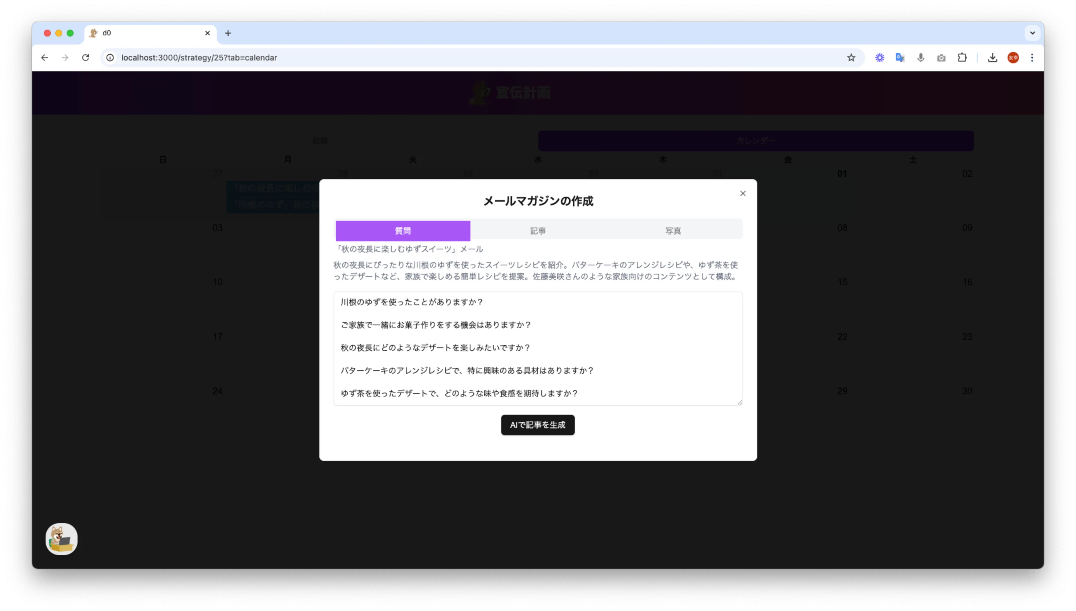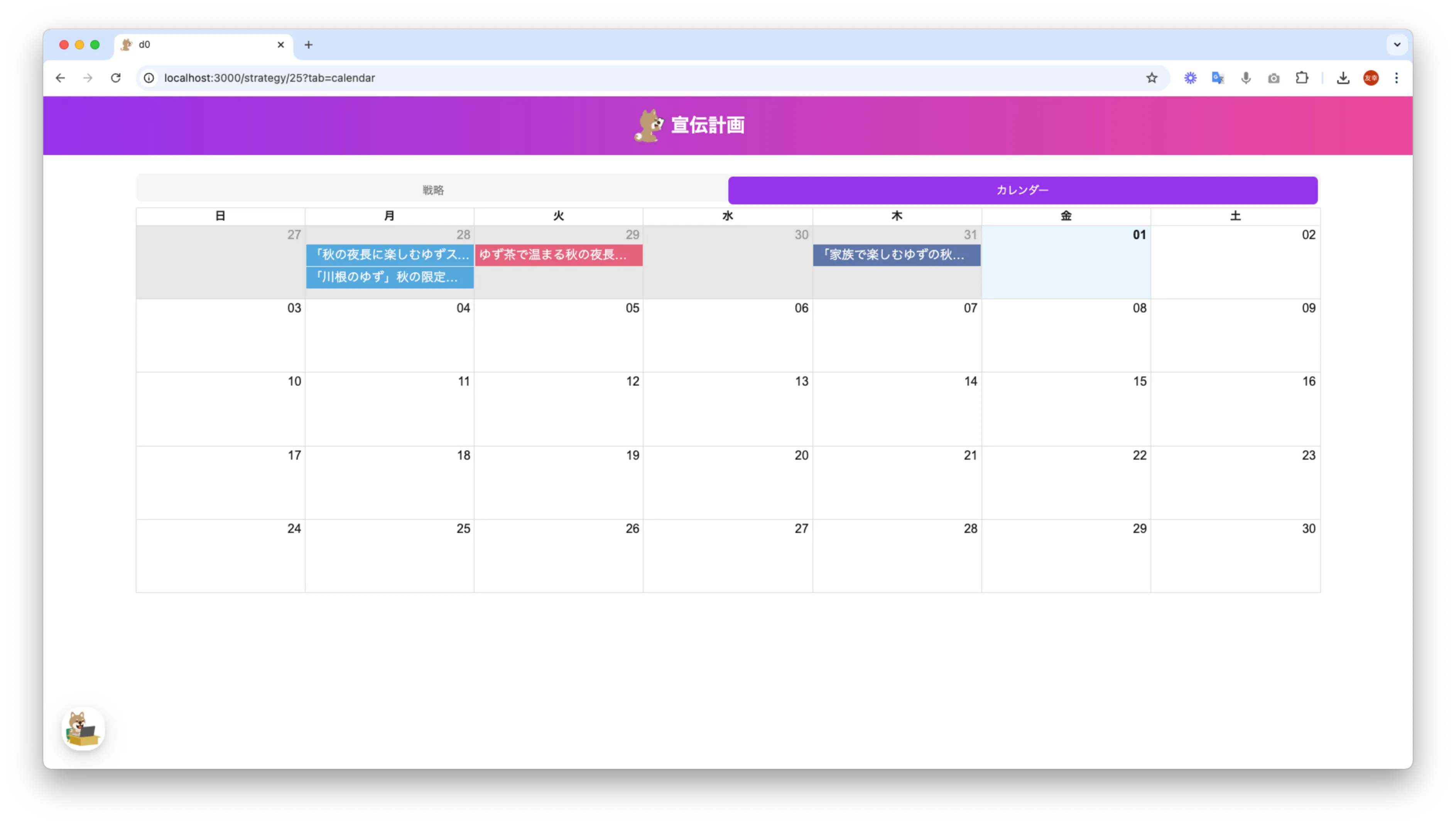 目標やターゲットに基づき、年間・月間のスケジュールを自動立案。各種イベントやキャンペーンのタイミングを最適化