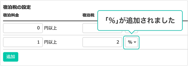 2.【定率でも自動計算】宿泊税の設定がさらに柔軟に