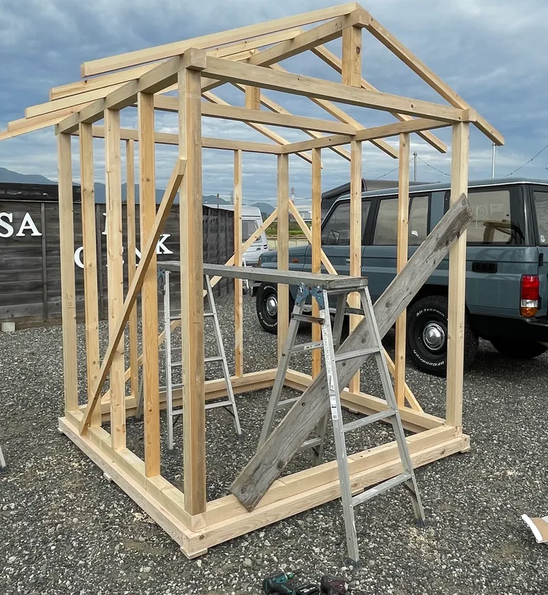 ・上にのぼり、屋根も組んでもらいます