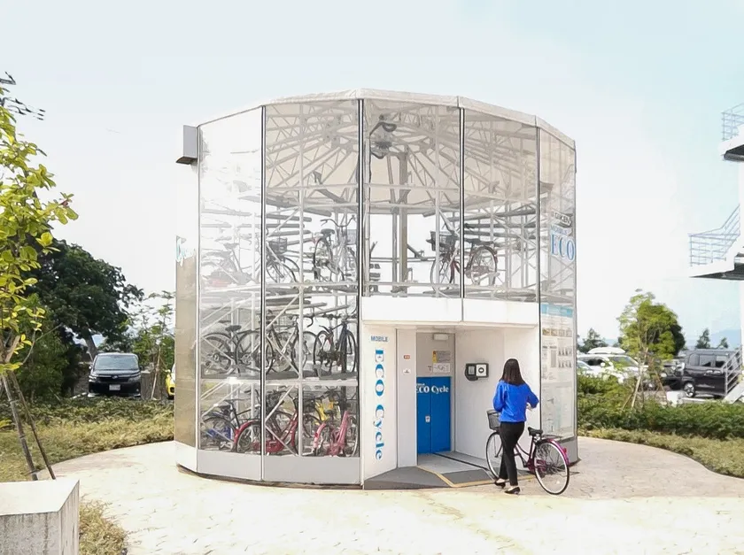 必要な時に必要な場所へすぐに設置でき、不要になれば簡単に撤去できる、省スペース・高収容な駐輪システムです。徹底した分割組み立て方式のため、シンプルな手順で設置は1~2日、撤去は1日で完了。運搬はトラック1台で行えます。外装面は自由に印刷可能で、景観に合ったデザインを叶えます。また、46m2の敷地に58台収容でき、収容効率は一般的な平置き駐輪場の約2.3倍です。平均出庫時間は9.7秒とスピーディーで、通学ラッシュ時でも利用者を待たせません。