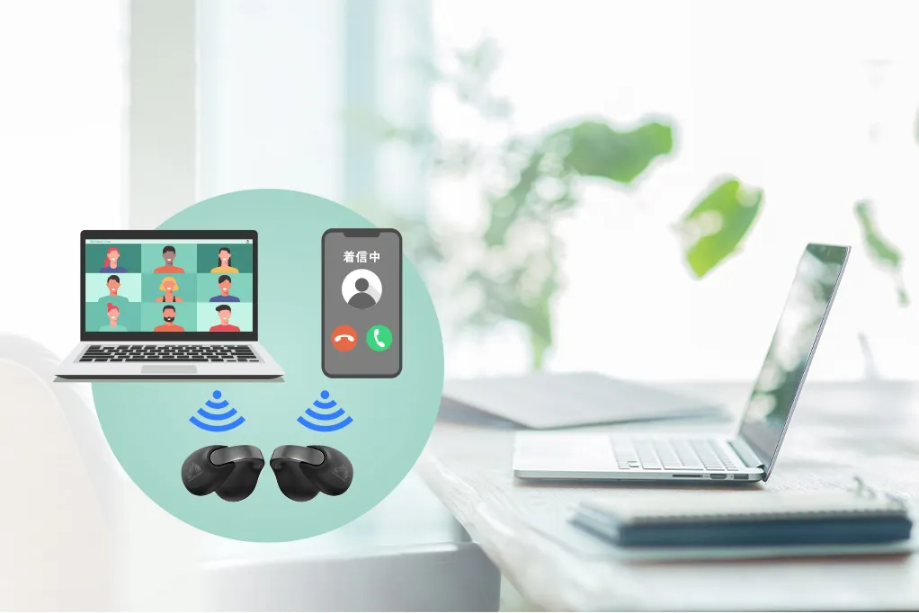スマホとPCなど2台の機器に同時にBluetooth(R)接続/待ち受けができ自動で切り替わるので、オンライン会議や通話の切り替えがとても便利です。