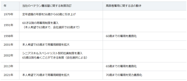 <ご参考>これまでの当社のベテラン層活躍に関する制度改訂