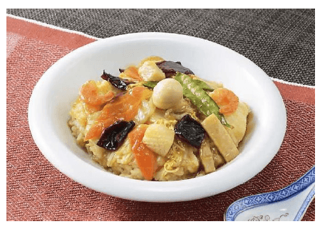 かきエキス・チキンエキスの旨味・チューニャン(米から作った発酵調味料)のコク・ごま油の風味が特徴のたれで仕上げた中華あんかけ丼。