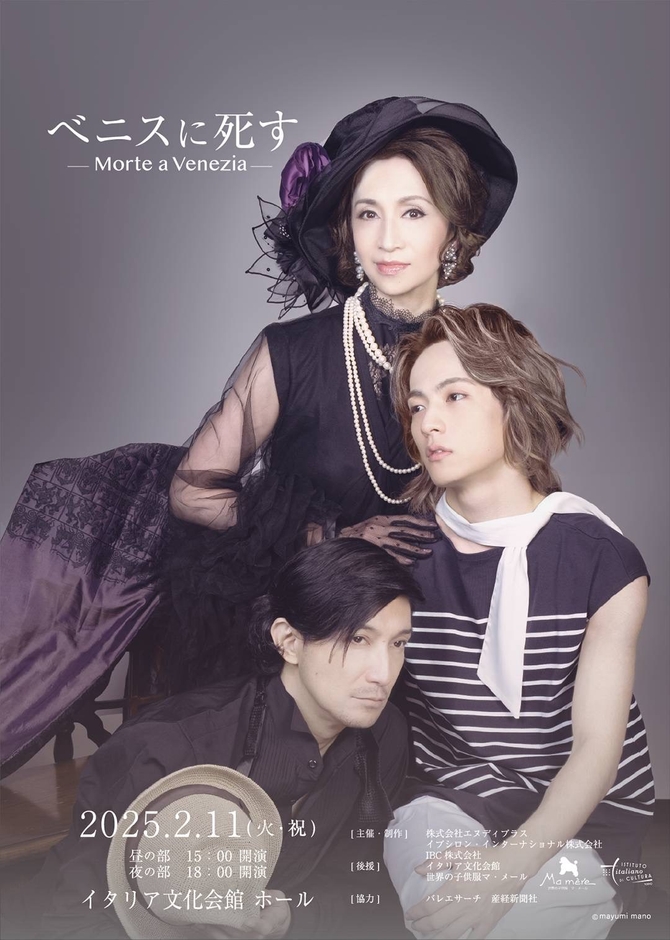 『ベニスに死す』 新演出版 ーMorte a Veneziaーが2025年2月11日 (火・祝)にイタリア文化会館ホール(東京都 千代田区 九段南 2-1-30)にて上演されます。チケットはカンフェティ(運営:ロングランプランニング株式会社、東京都新宿区、代表取締役:榑松 大剛)にて11月8日(金)10時発売開始予定です。