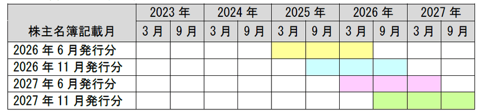 2026年3月末を基準日とする株主優待制度より、変更後の新制度を適用します。