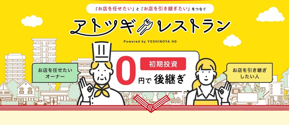 東京都中央区に本社を置く株式会社シェアレストラン(代表取締役:武重準、吉野家ホールディングスグループ)は、飲食店の事業継承を支援する新サービス「アトツギレストラン」における代理店の募集を開始したことをお知らせいたします。