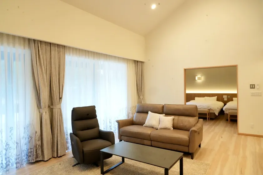 本施設は1日1組限定の一棟貸しで、北海道の大自然に囲まれたプライベートな空間と、贅沢な天然温泉露天風呂、広々としたリビング、ウッドデッキ、サウナ(外付け水風呂)を備えています。自分だけの時間を楽しみ、心身を癒やす「蘇芳の庵」では、四季折々の風景と共に、十勝の風情と歴史に浸る特別な滞在体験が待っています。