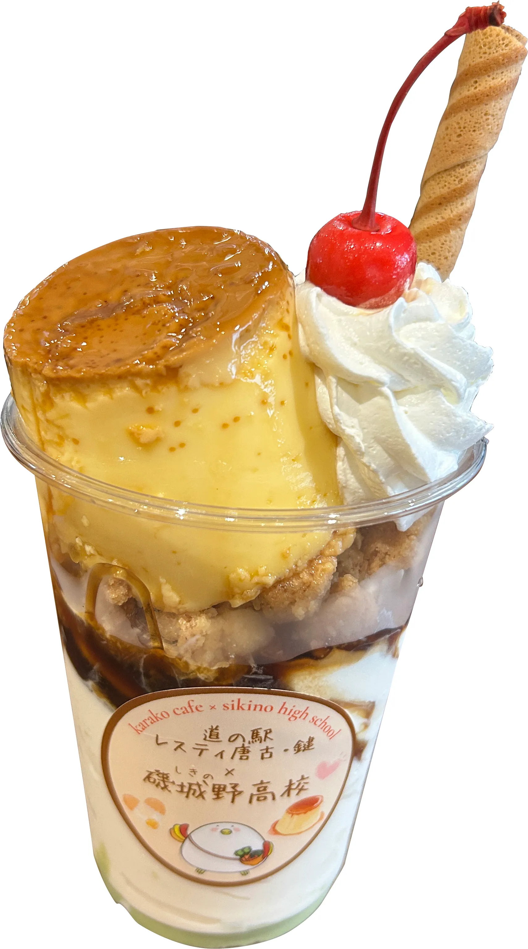 このたび、当社が運営管理を受託する田原本町の道の駅「レスティ唐古・鍵」の2階にある「からこカフェ」で『濃厚たまごのプリンパフェ』を販売いたします。
