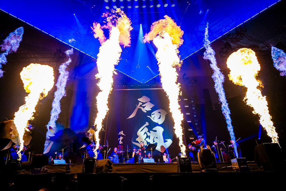 ここから本編ラストに向けて、どんどんテンションが高まる。「シーザー・パレス・ブルース」(U.K.)、「カシミール」(レッド・ツェッペリン)、そして「紫の炎」(ディープ・パープル)。演奏に呼応するかのように舞台演出も切れ味を増していく。そしてーーー「紫の炎」では至る所で火の手が上がるのであった。火を吹くクラシックコンサートを聴くのは、もちろん初めての経験である。ただ、燃え盛るステージで演奏された本作はヴィヴァルディの協奏曲のような様式美を聴かせ、それはともすればロックとクラシックを融合させようとした作曲者のリッチー・ブラックモアが企図したものと近かったかもしれない。オープニングと同様、呆気にとられながら本編は終了した。