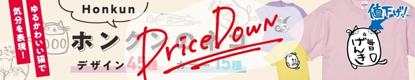 オリジナルTシャツブランド「俺流総本家」(運営:株式会社太陽、所在地:千葉県匝瑳市飯倉台28-11、代表取締役:片岡正徳)は、人気シリーズ「ホンクンのネコTシャツ」について、これまで通常価格3,200円(税込・送料当社負担)で販売しておりましたが、7月1日より新価格 2,800円(税込・送料当社負担) にてご提供いたします。
