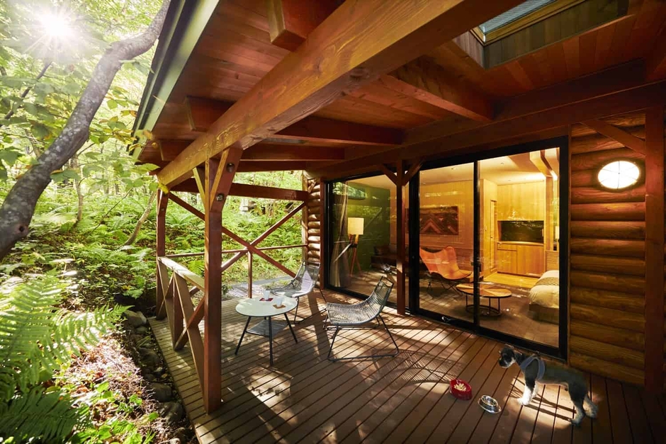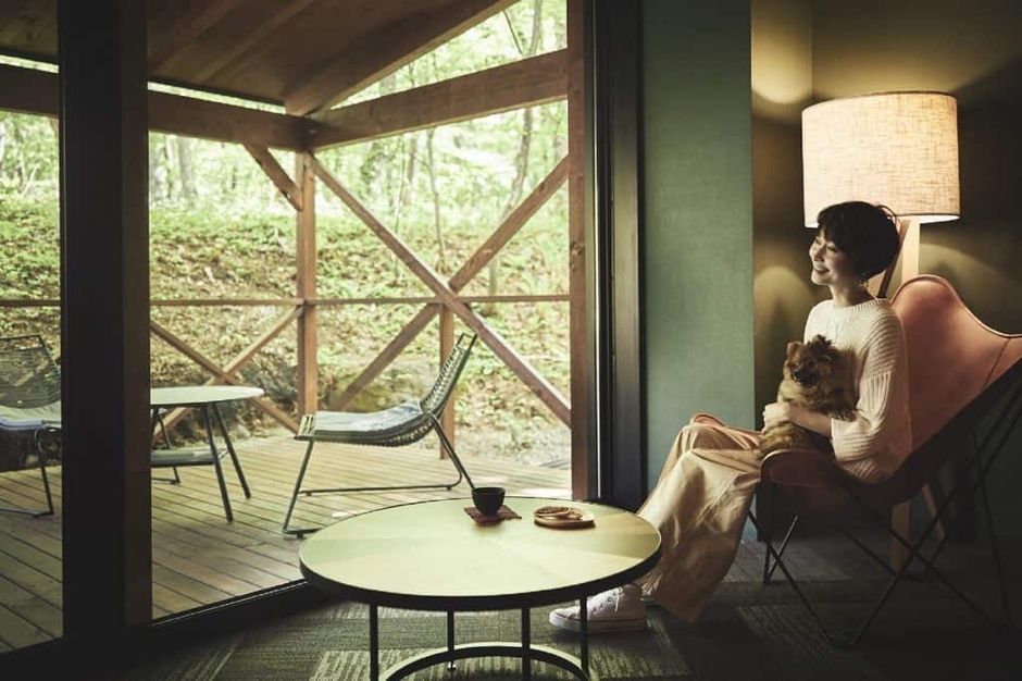 特徴1 奥入瀬渓流の自然に癒されながら、愛犬との滞在を楽しめるテラス付の客室