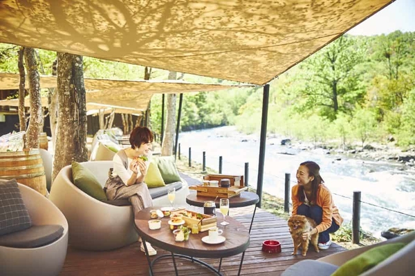特徴3 早朝の澄んだ空気の中、愛犬と共に楽しめる「渓流テラス」での朝食