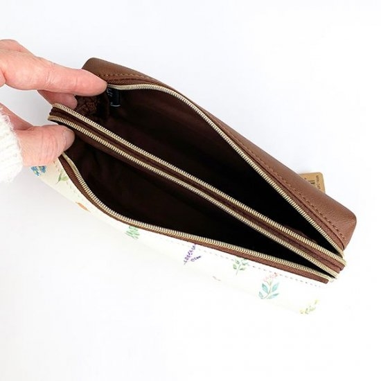 ボタニカルなテイストが素敵な、ペンポーチが加わりました。ナチュラルな雰囲気のデザインで、大人の方にもピッタリです。収納力もあって、使いやすい一品ですよ。