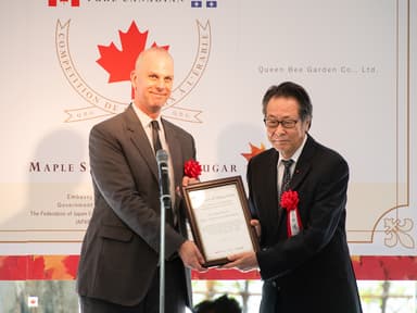 また、11月7日(木)にカナダ大使館にて行われた「15周年記念レセプション」では、日本におけるメープル製品の普及にご尽力いただいている本大会後援団体の日本洋菓子協会連合会、全国和菓子協会に、カナダ大使館から感謝状が贈呈されました。
